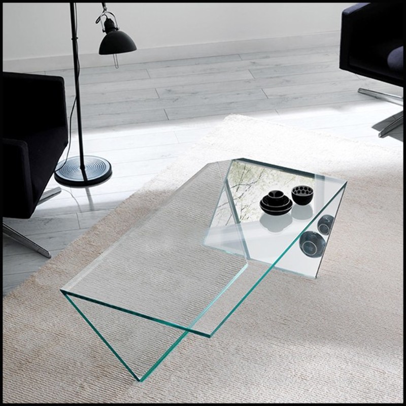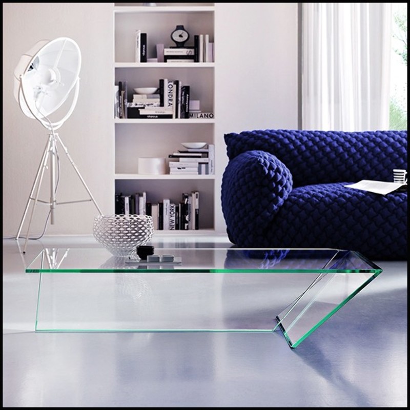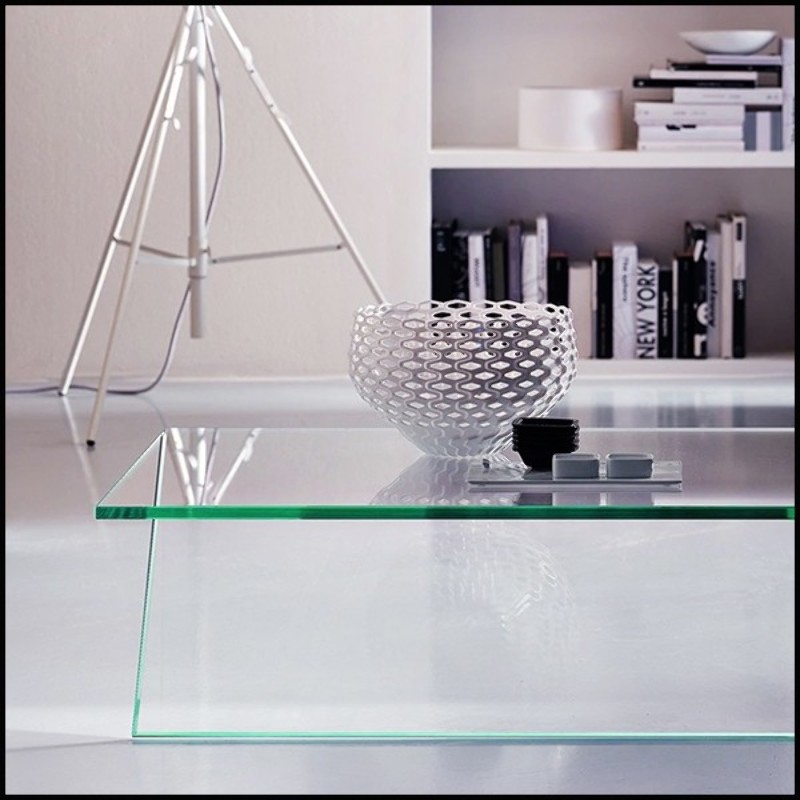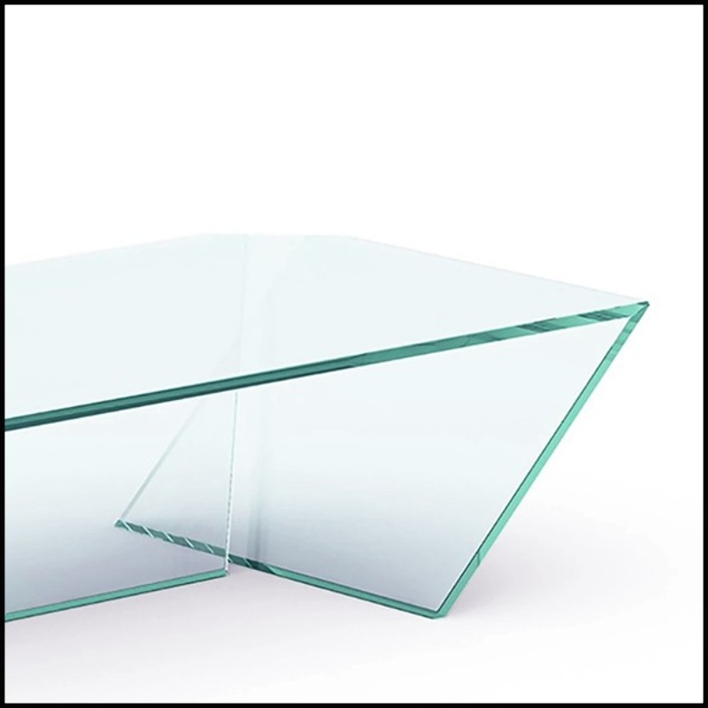 Table basse Wilkin en verre extra-clair aux bords arrondis.