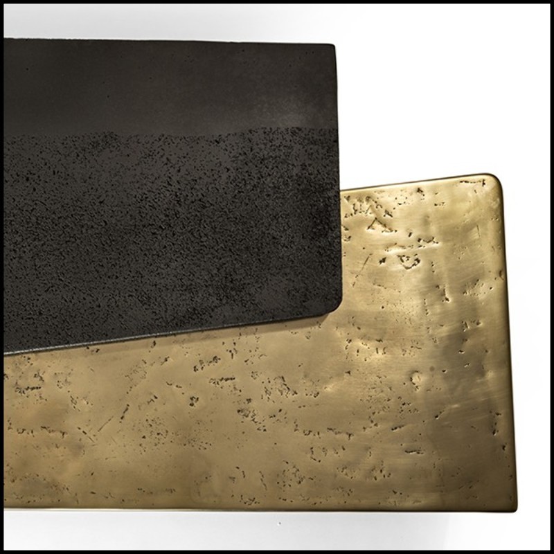 La partie en béton est travaillée en une surface vieillie et peinte en noir mat.