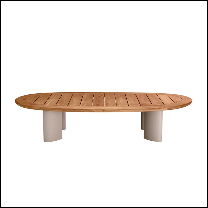 en teck naturel et ses quatre pieds en aluminium finition sablée.
