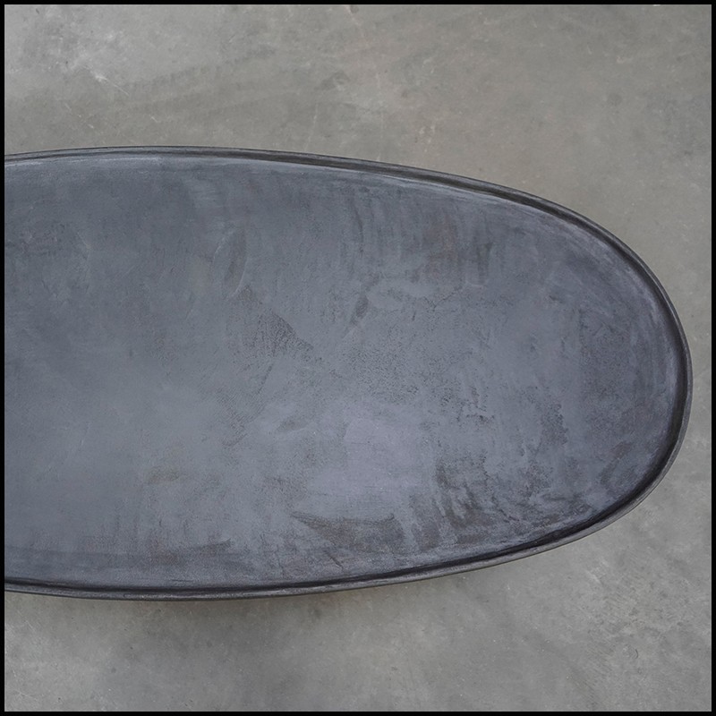 en pierre calcaire artisanale, finition gris anthracite foncé.