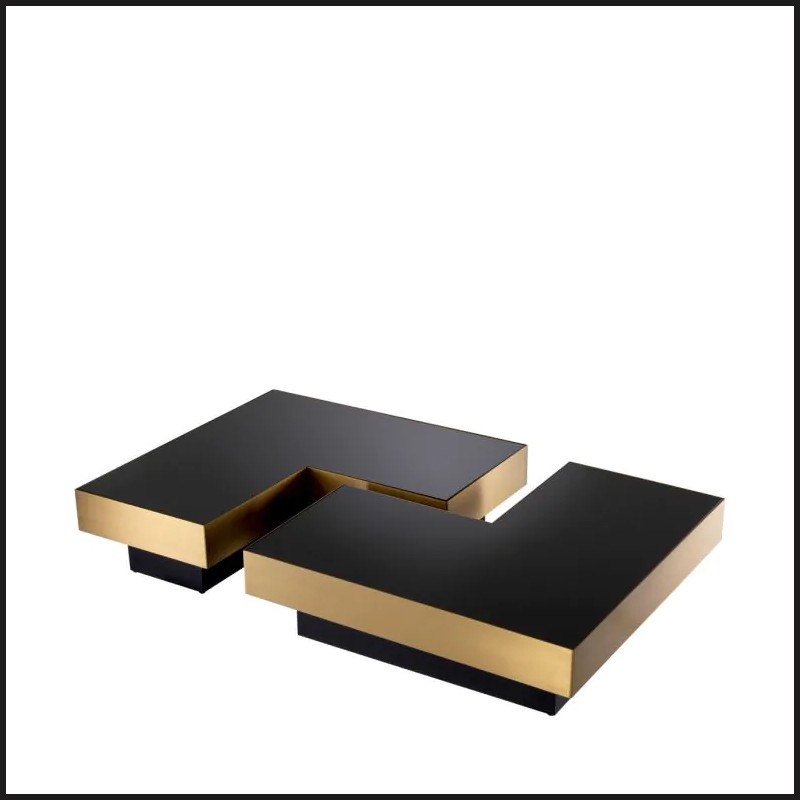 Composée de 2 tables basses en L et de 2 plateaux carrés.