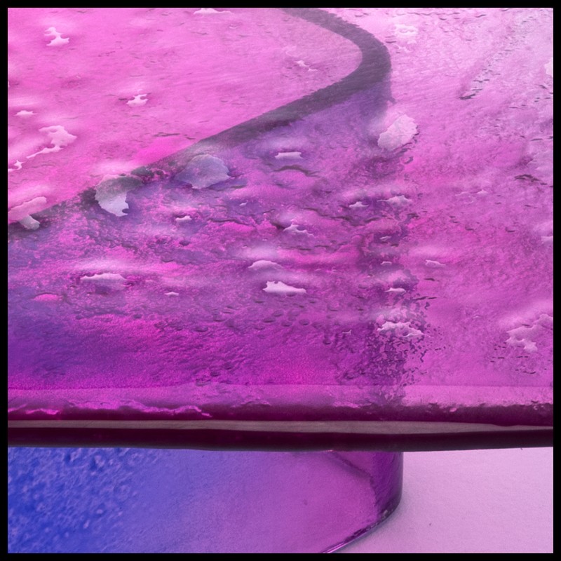 La table basse Candy est réalisée en verre cuit avec un plateau aux bords
