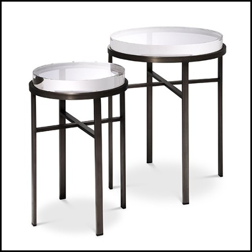 La table basse Portofino Eichholtz présente un plateau en onyx de forme