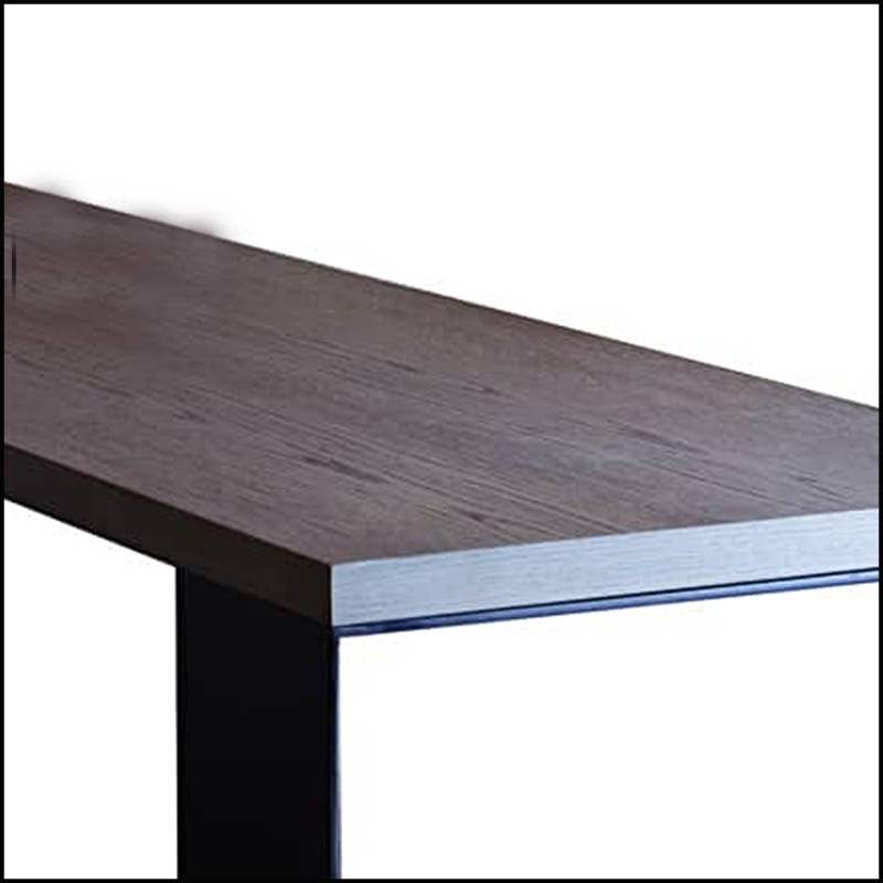 avec plateau plaqué chêne et pieds en acier.