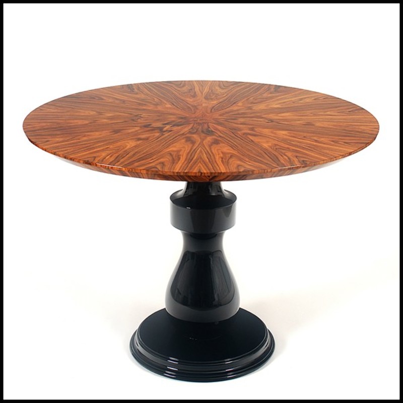 Piédestal en bois poli et vernis. Plateau réalisé avec