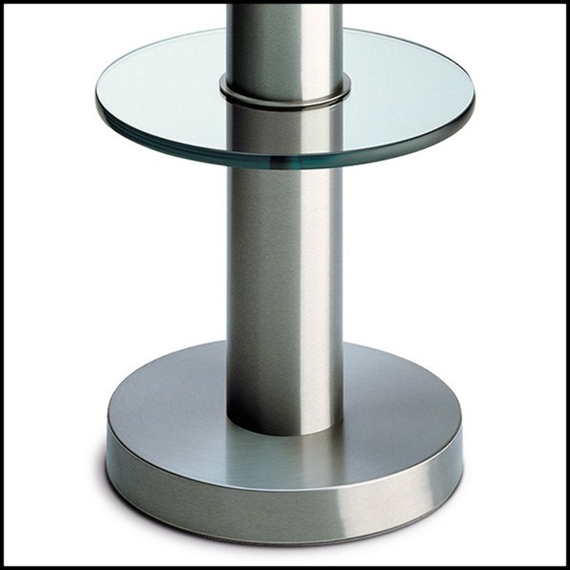 en métal matte. Egalement dotée de deux plateaux en verre clair de