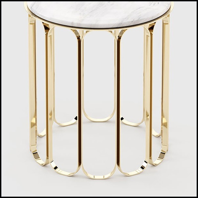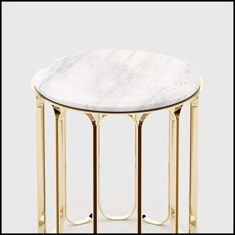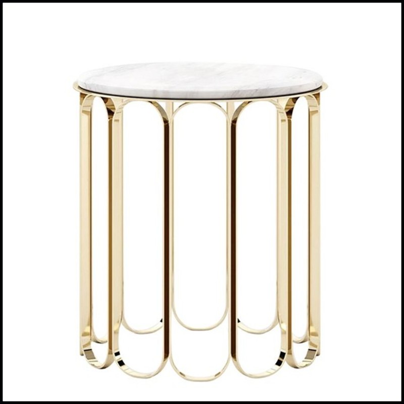 La table d’appoint Cartouche associe l’éclat d’une base en acier