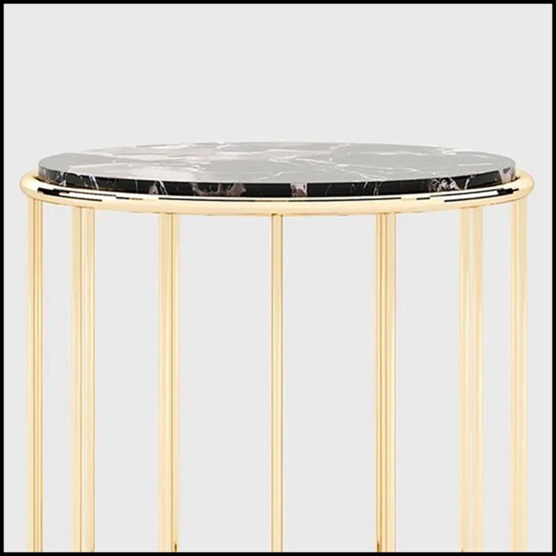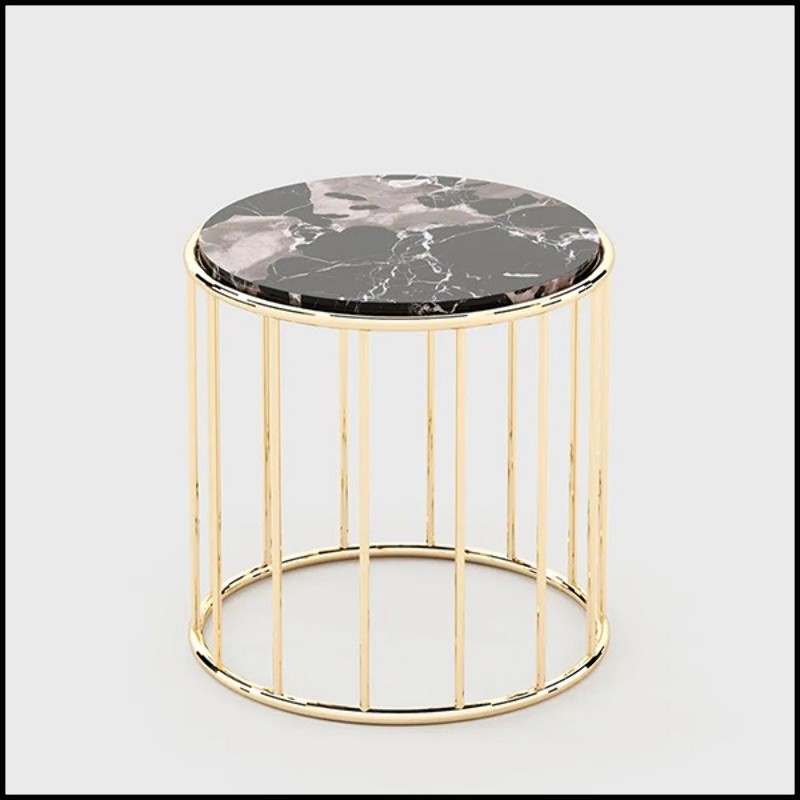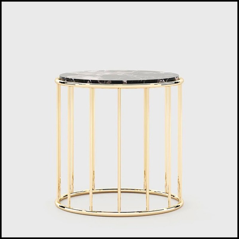 Table d'appoint Arteum avec plateau en marbre poli et structure en acier inoxydable poli finition or.