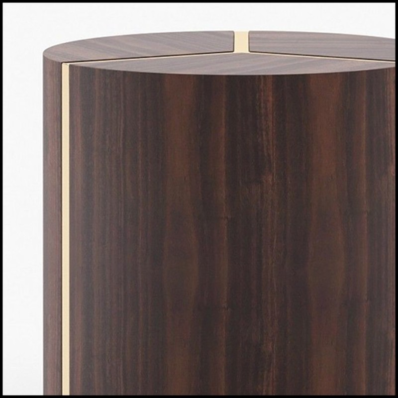 Avec détails en acier inoxydable en finition dorée. Disponible également en ébène brillant, ou en eucalyptus gris brillant ou mat,