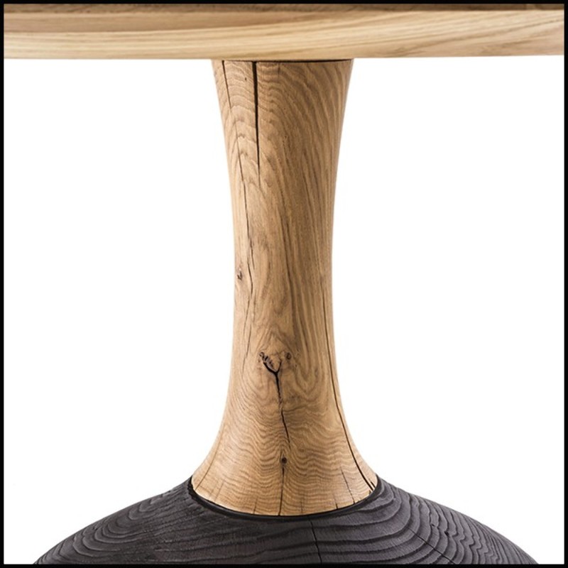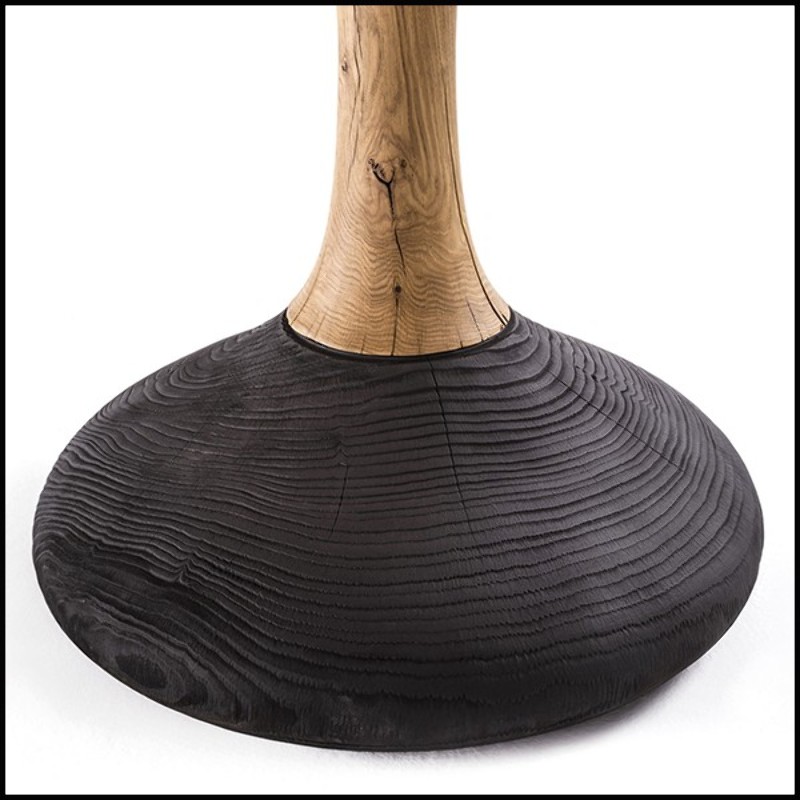 base en bois de chêne brûlé, qui contraste harmonieusement avec