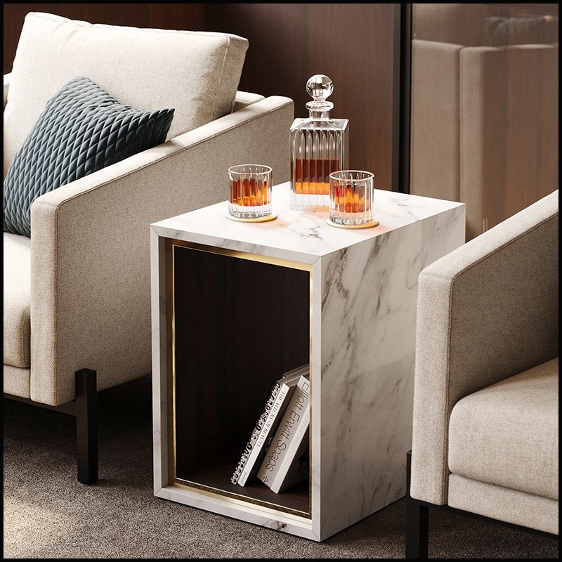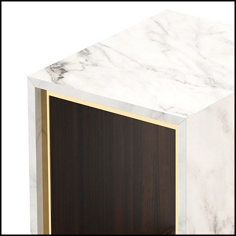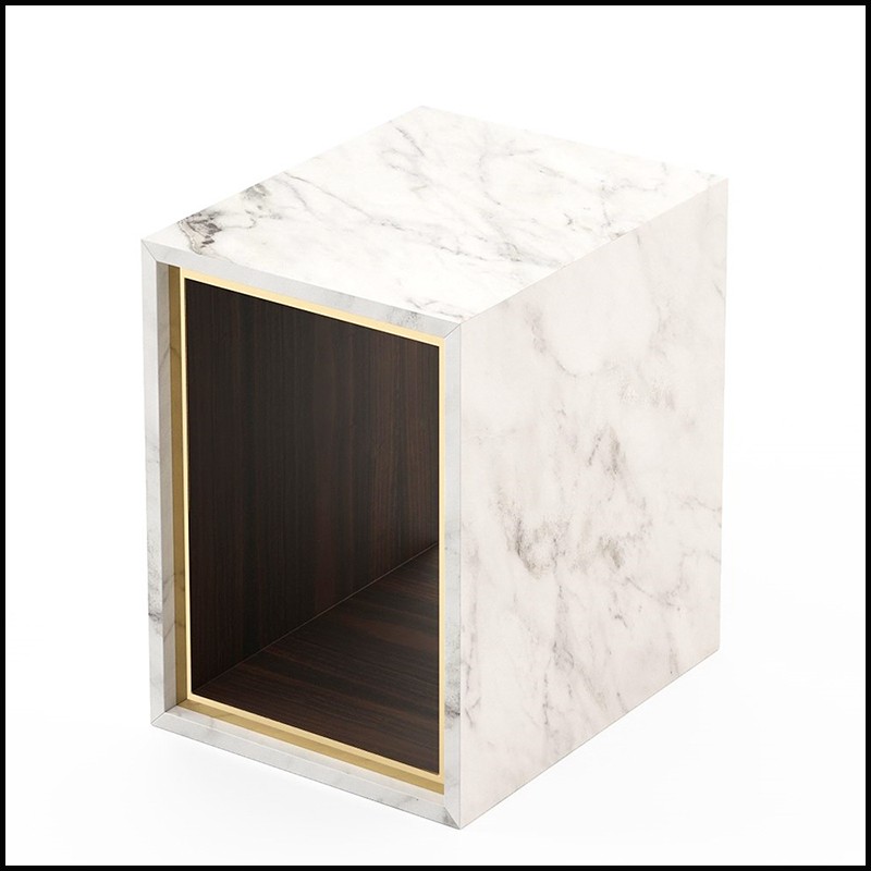 Table d'appoint Waren recouverte de marbre blanc poli sculpté,