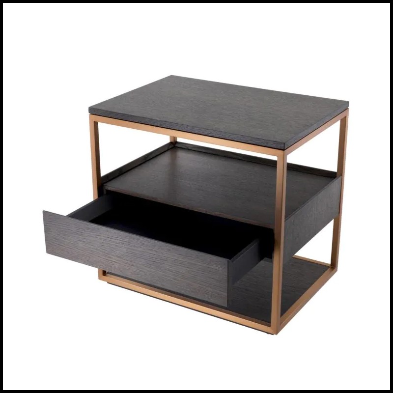 Avec un cadre métallique au fini laiton brossé et un dessus,