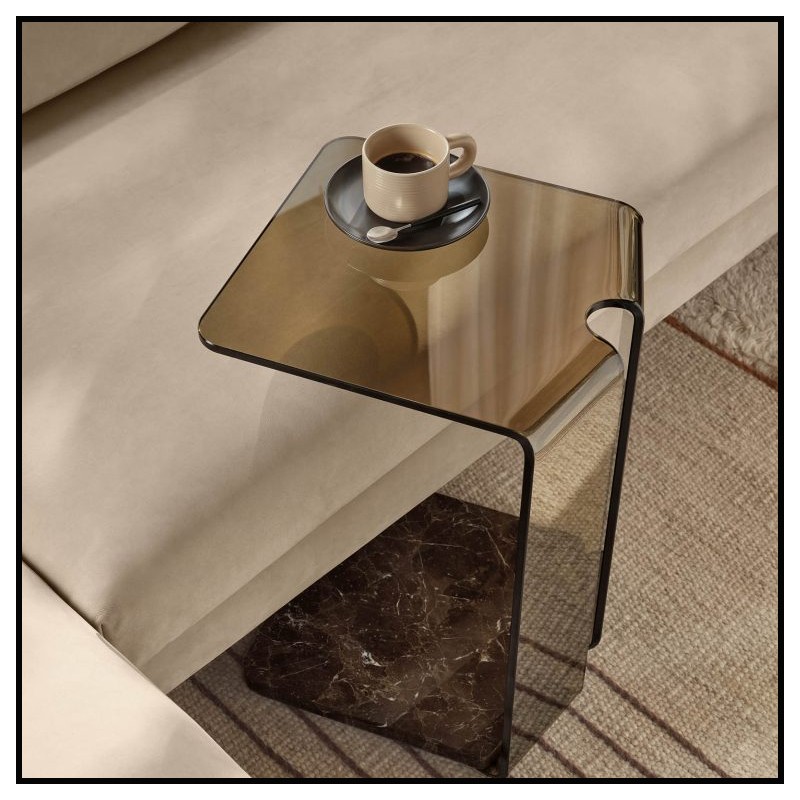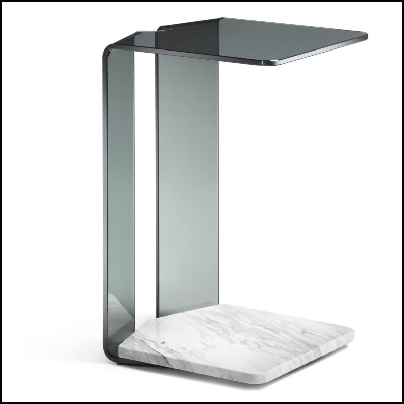 La forme courbée du verre de 10mm utilisé pour cette table d'appoint procure