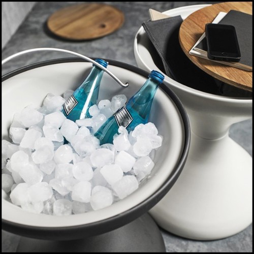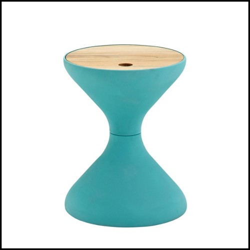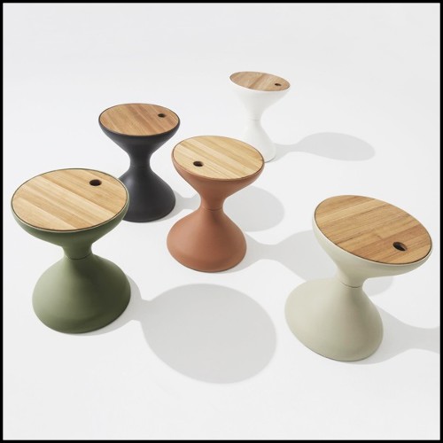 revêtu de poudre blanche et plateau en teck massif brossé.