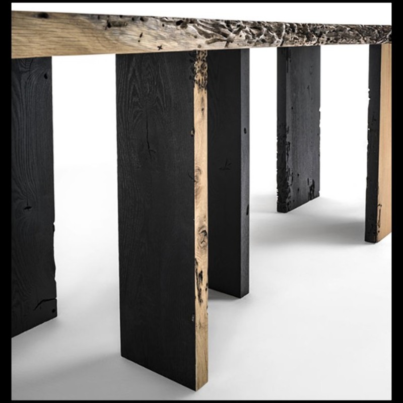 sublimé par une finition bois brûlé unique et des bords naturels préservés.