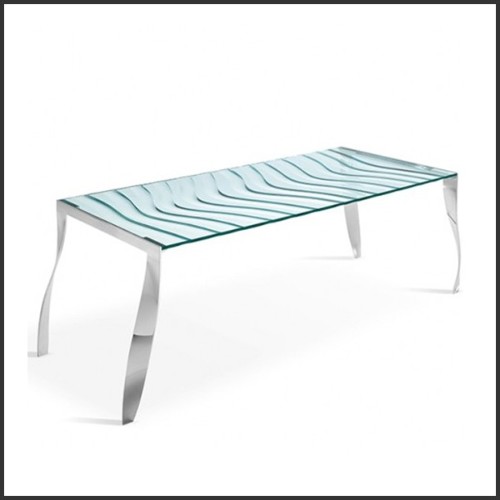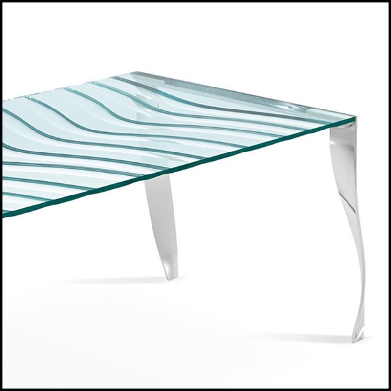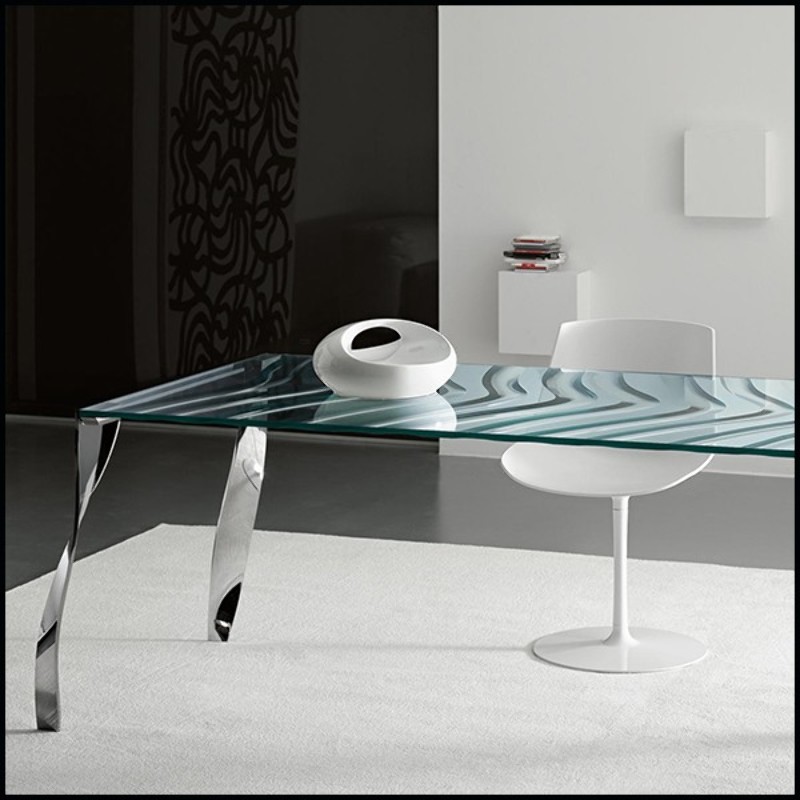 Table à Manger Ondulate Glass est dotée d'un plateau en verre plat