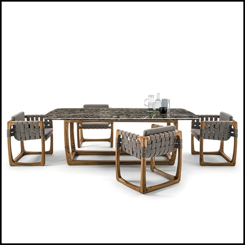La Table à manger Trooper associe le teck massif naturel et le marbre