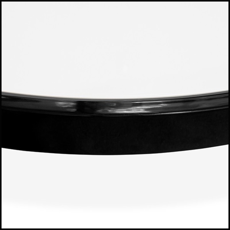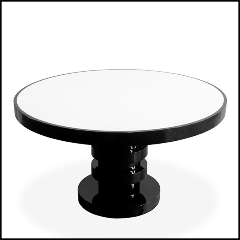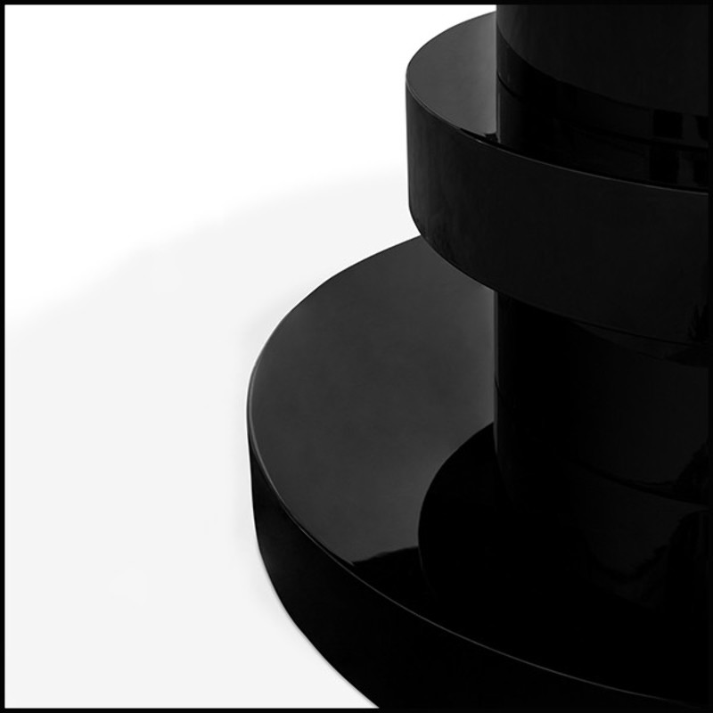 Son plateau en frêne plaqué, associé à une structure en frêne massif, est sublimé par une finition en laque noire, créant un contraste sophistiqué et une allure résolument luxueuse.