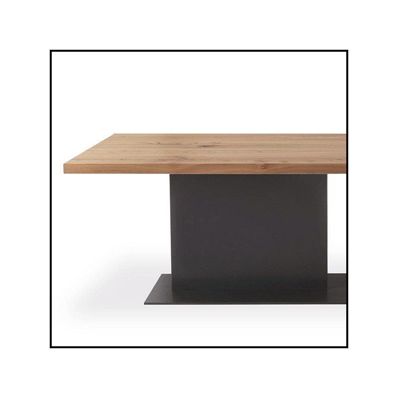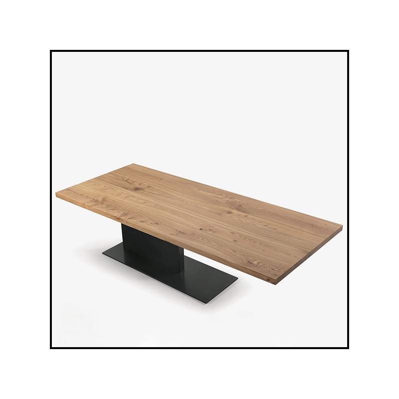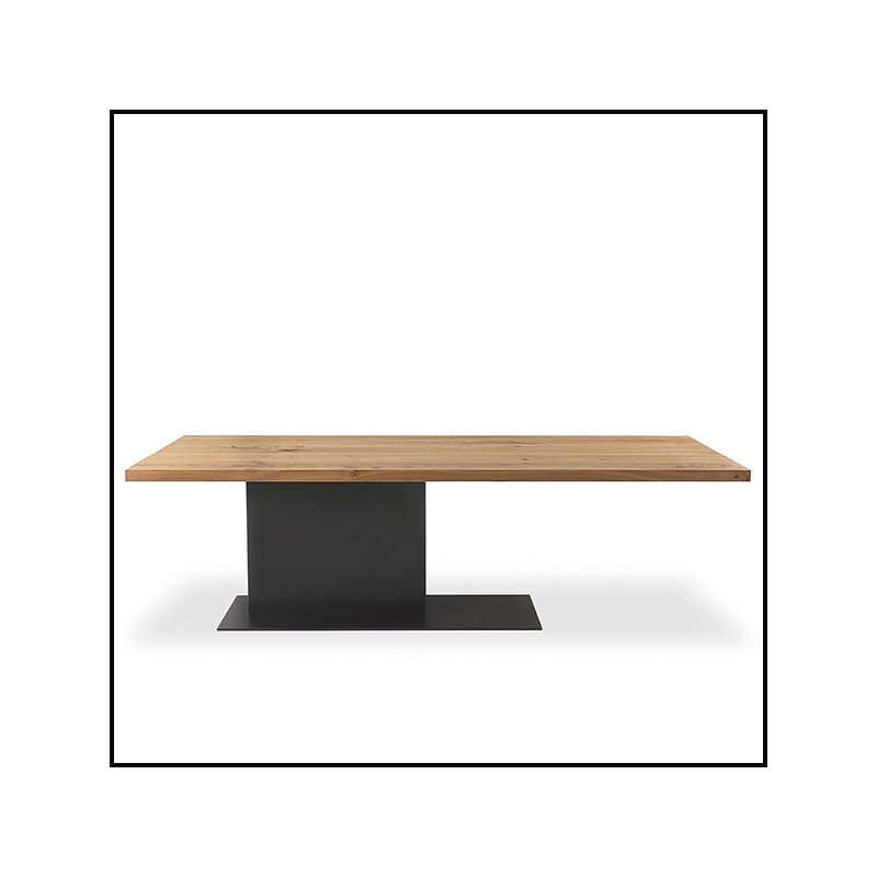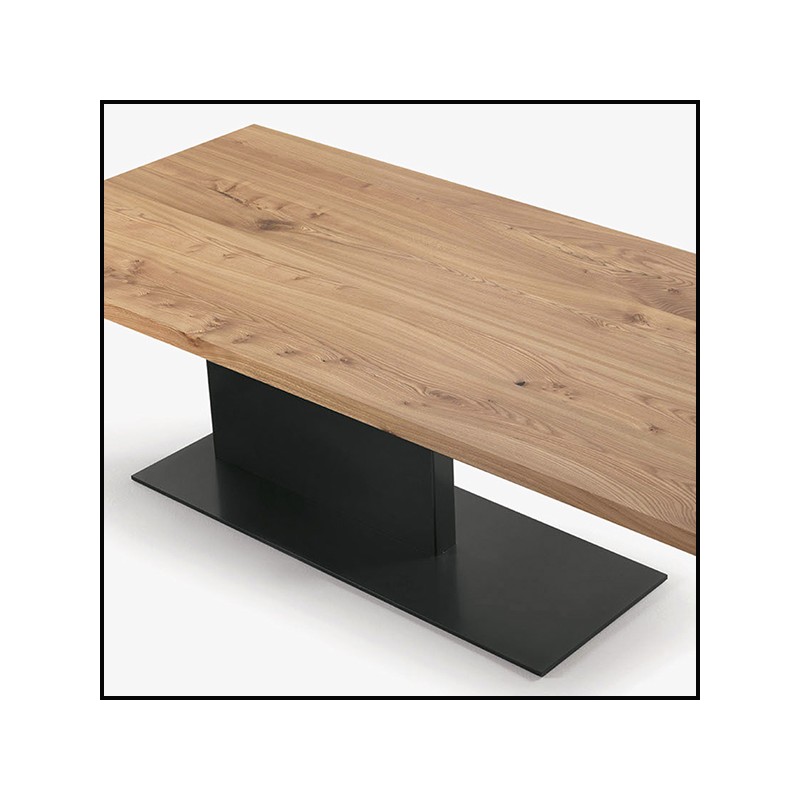 La Table à manger Stage Iron associe un plateau en chêne massif et une base en fer laqué