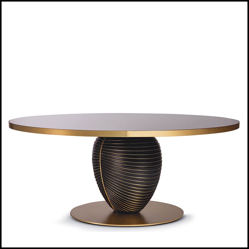 Avec plateau rond en verre laqué marron