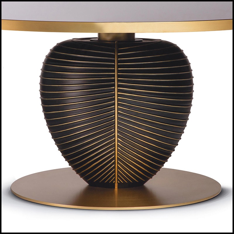 et base ronde en métal finition dorée satinée mate.
