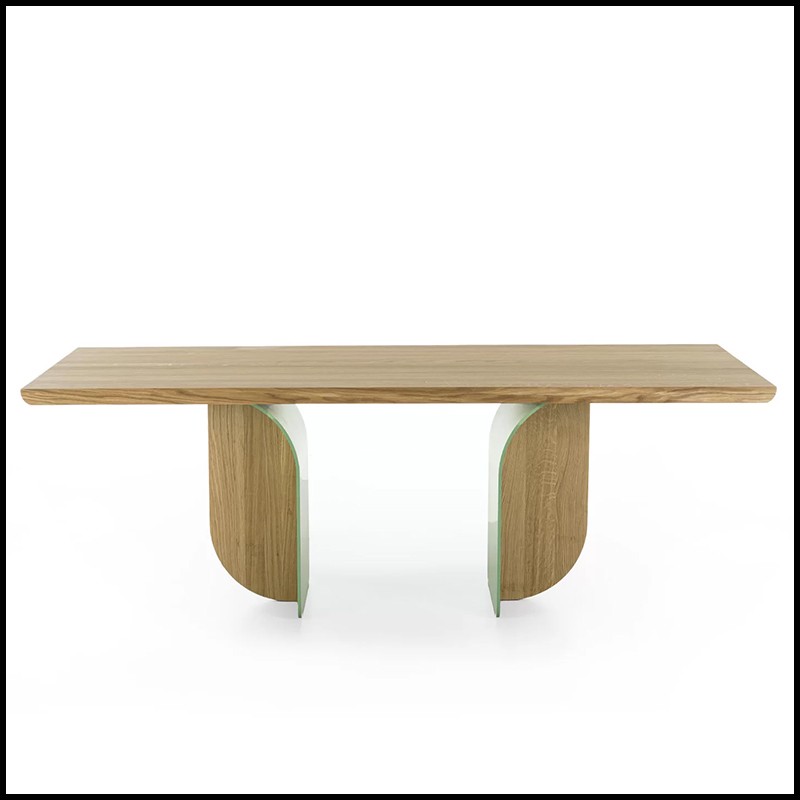 chêne ou merisier, et acier en bronze ancien, titane ou inox brossé, la table Forma