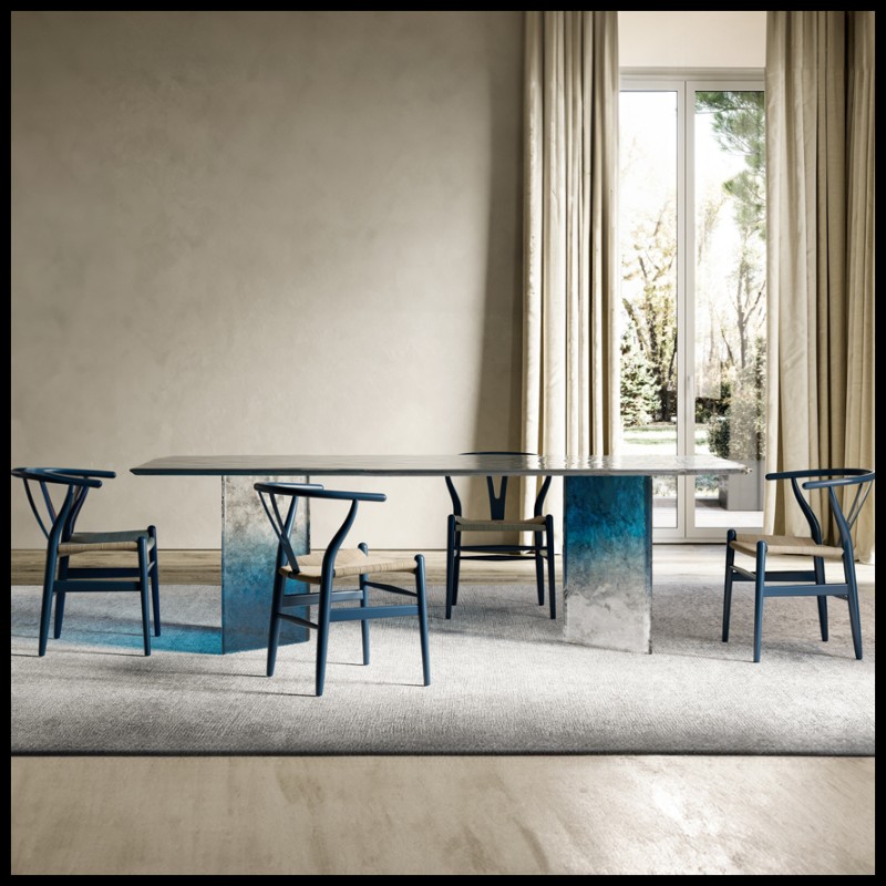 La finition en dégradé subtil, du bleu profond au transparent, est sublimée par