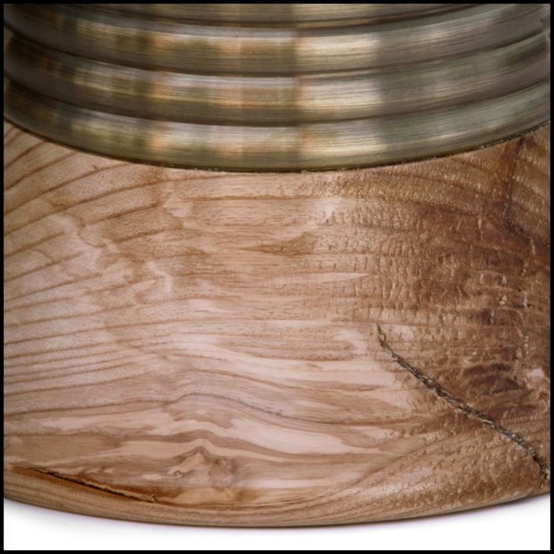 Tabouret Ring en bois de Tilia cerclé d'anneaux en laiton brossé.
