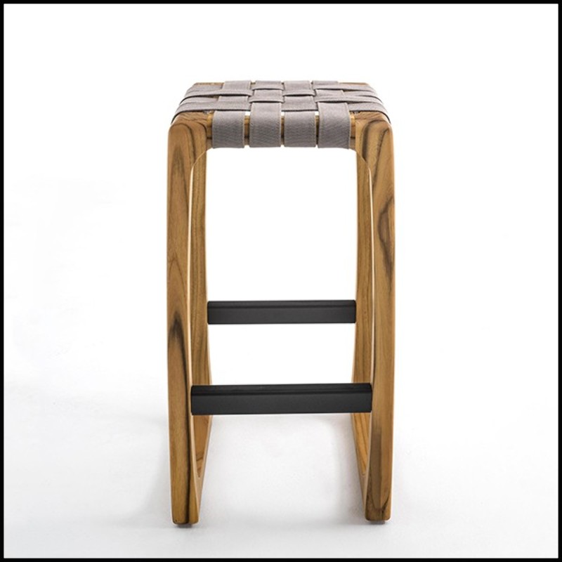 Tabouret de bar Webbing Bar Outdoor en teck massif,