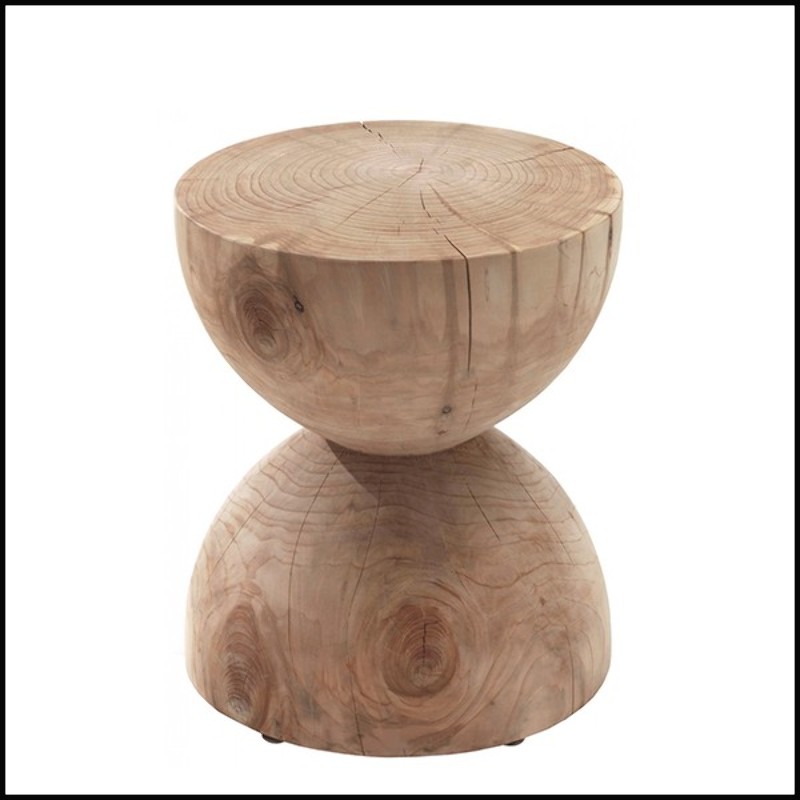 Le Tabouret Sphères Cedar est sculpté dans un bloc de cèdre massif naturel,