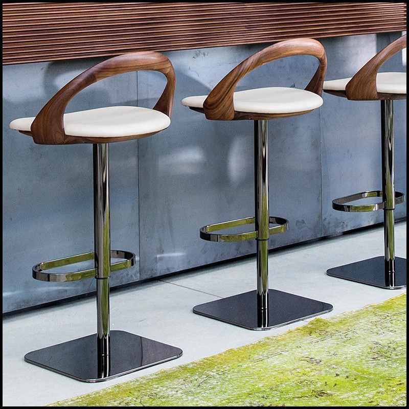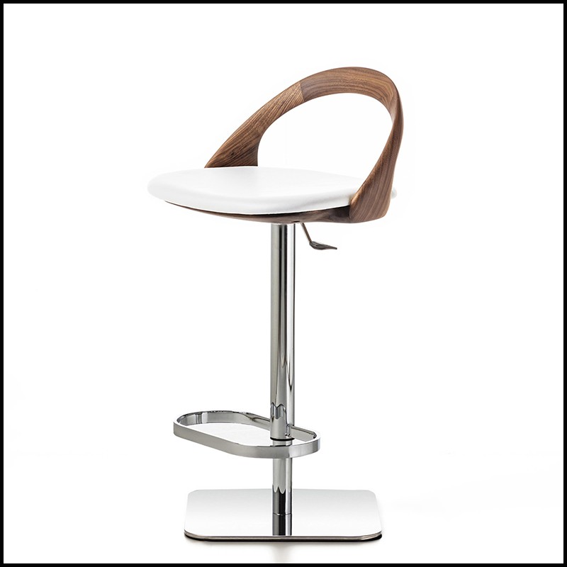 tabouret pivotant dont l'assise et le dossier sont en noyer massif.