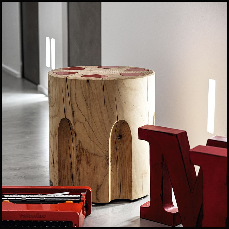 Tabouret Sparacuori de Riva1920. Conçu à partir d’un seul bloc de cèdre massif odoriférant,