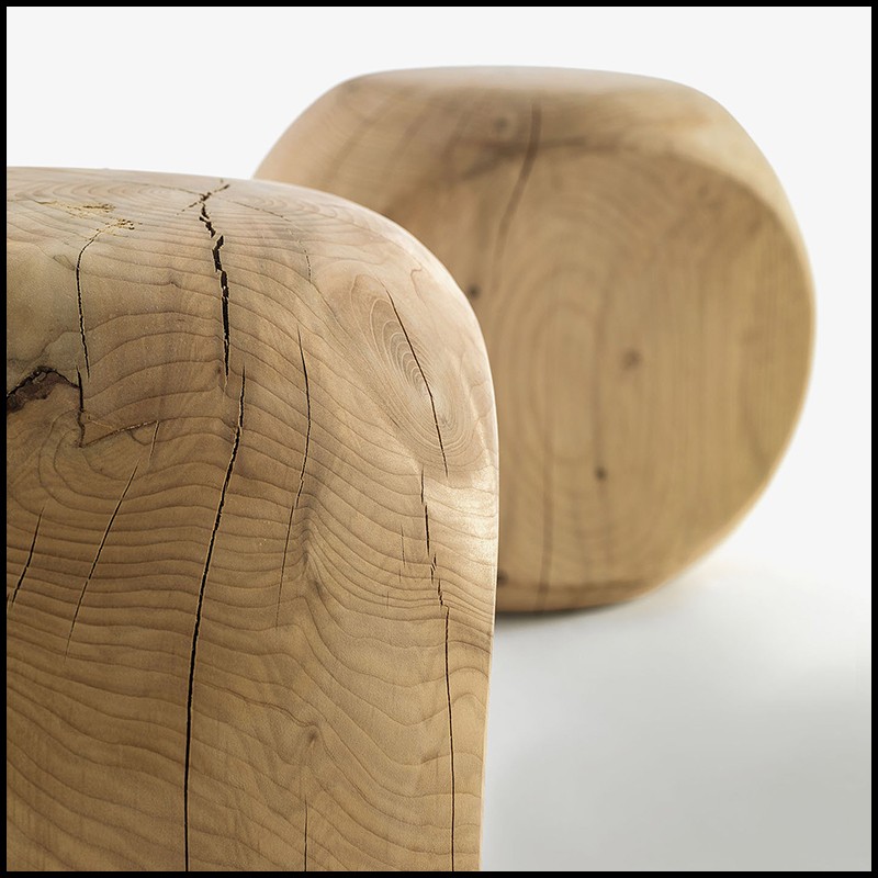 Tabouret Ameda est une création Riva1920. Sculpté dans un seul bloc de cèdre