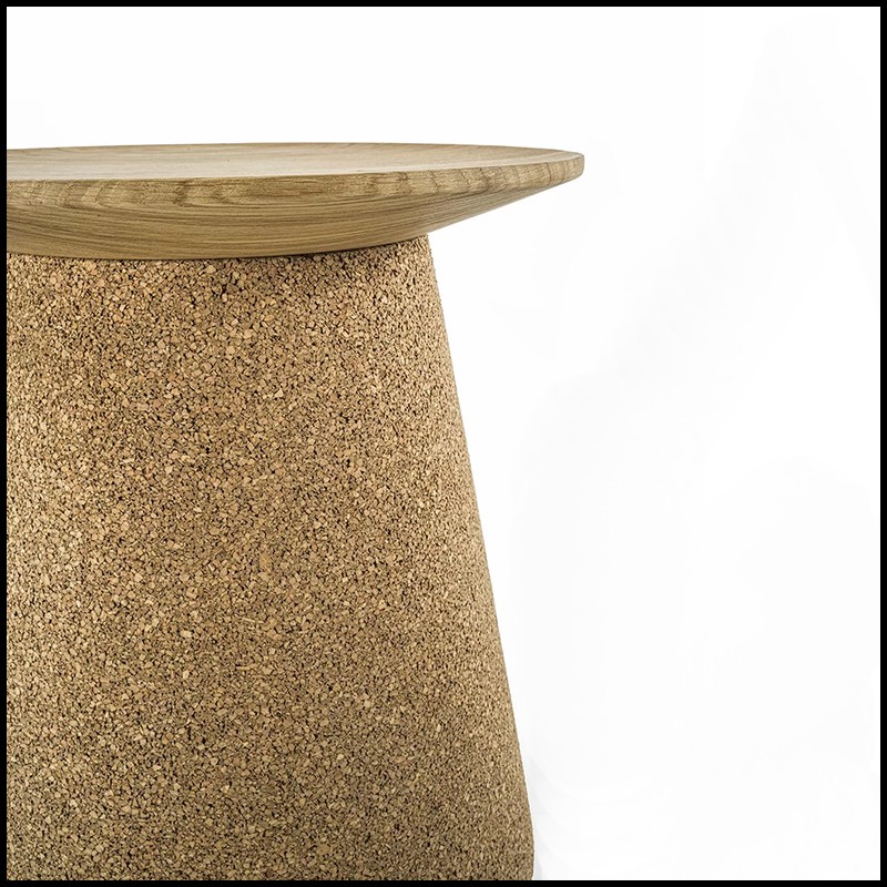 en core, liège provenant de bouchons recyclés mélangés à des colles naturelles. Le tabouret
