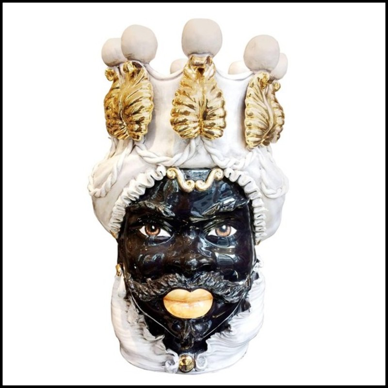 Vase et bougeoir Valet Moro Man, en céramique sicilienne fait main et