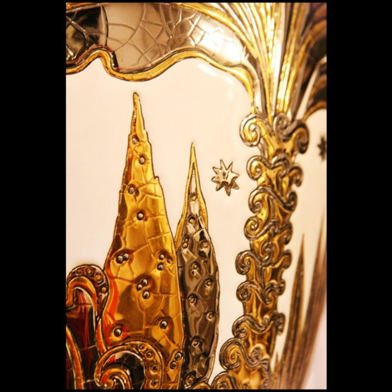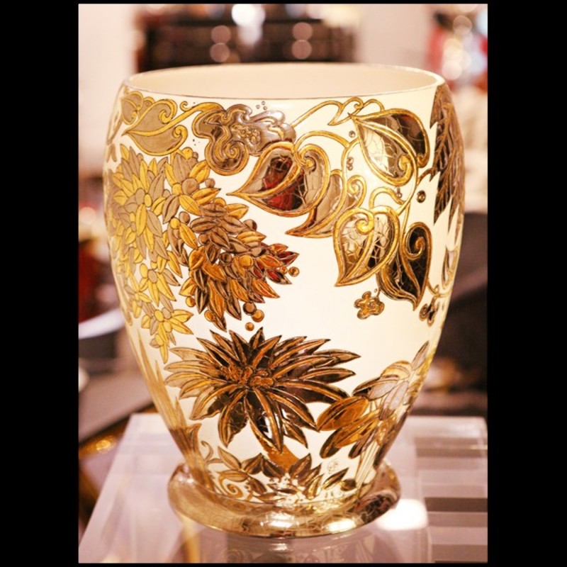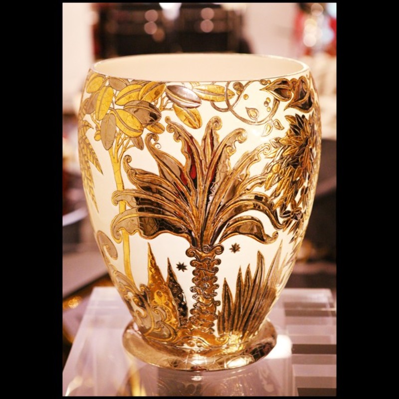 Vase Emaux de Longwy fabriqué en France en édition limitée PC-Palmers white and golded