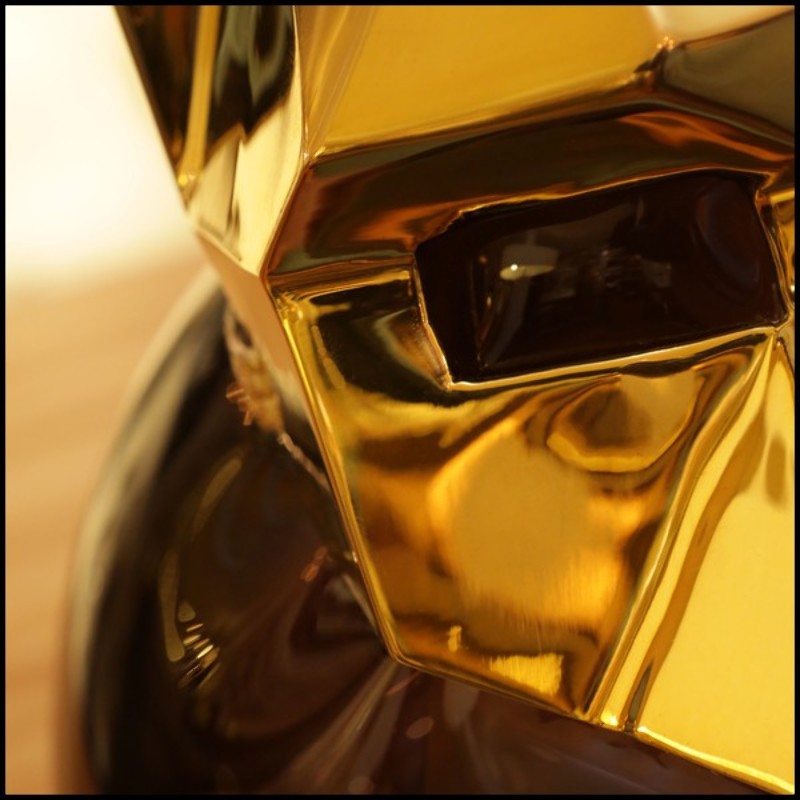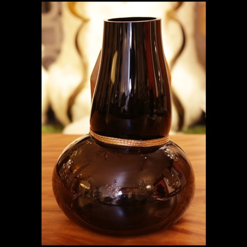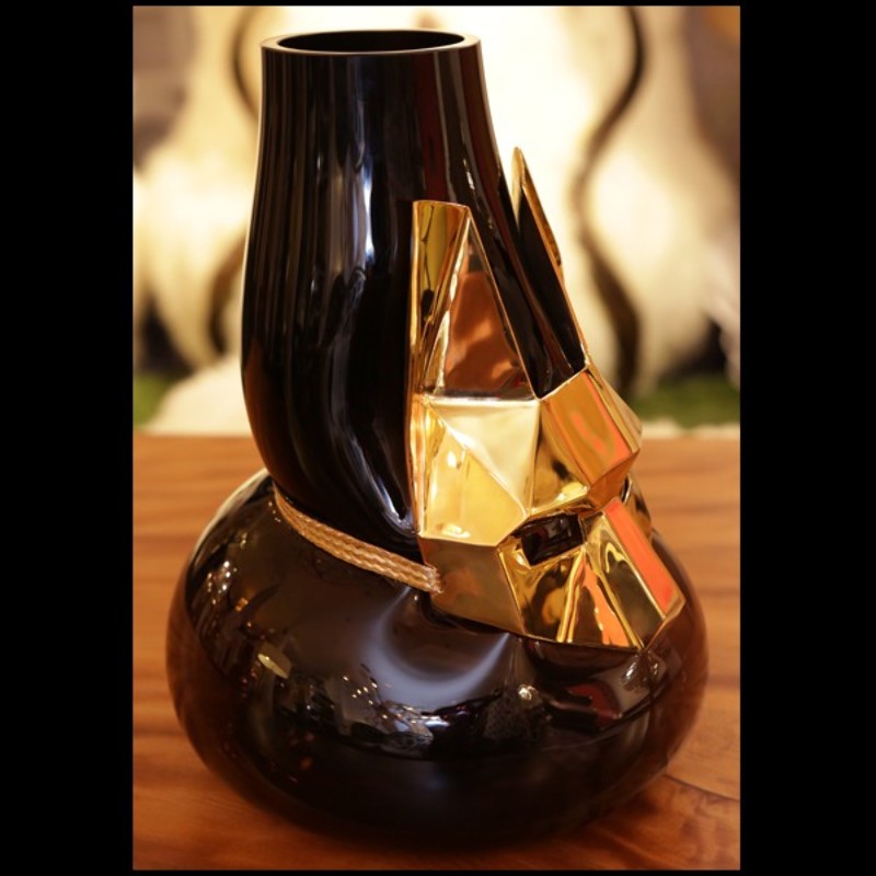 Vase en verre noir soufflé à la main avec masque en bronze finition Gold 104-Egyptian Cat
