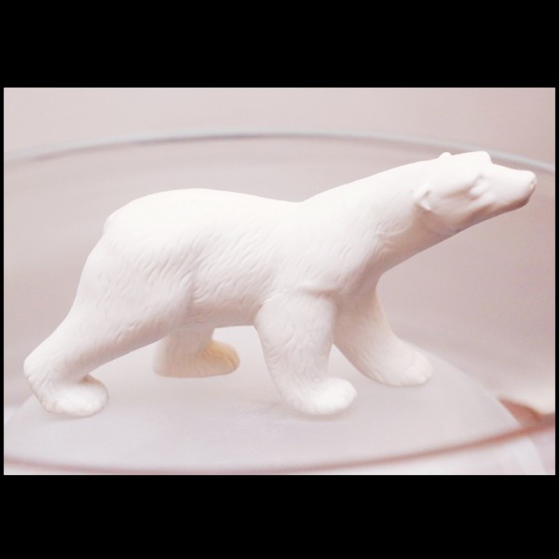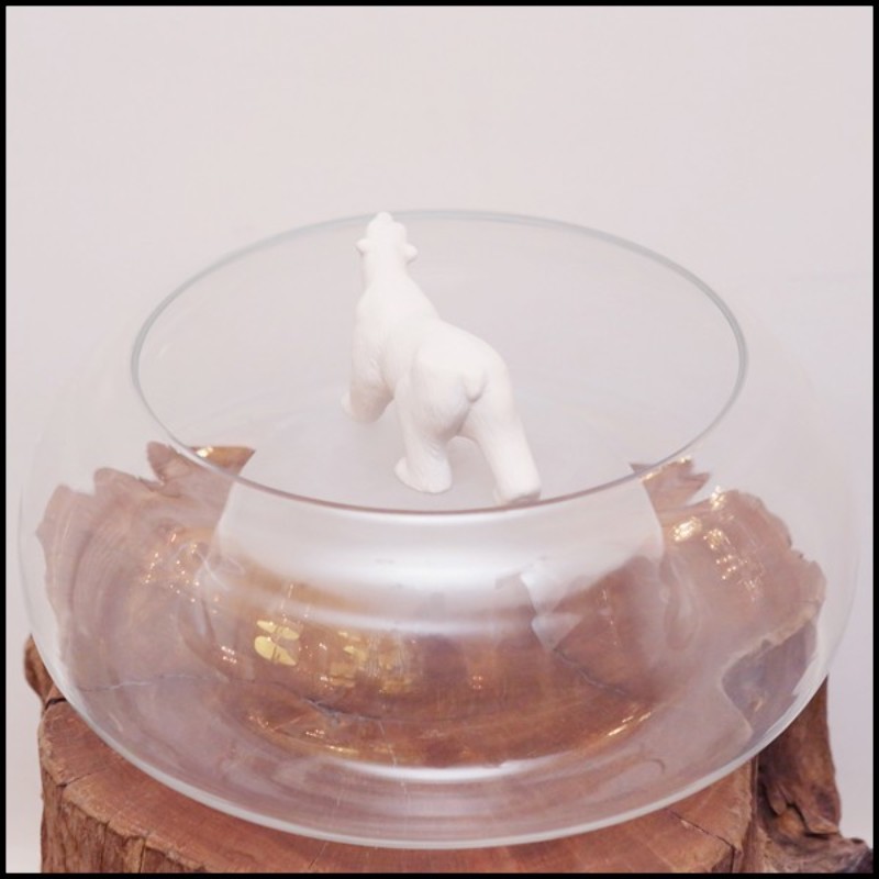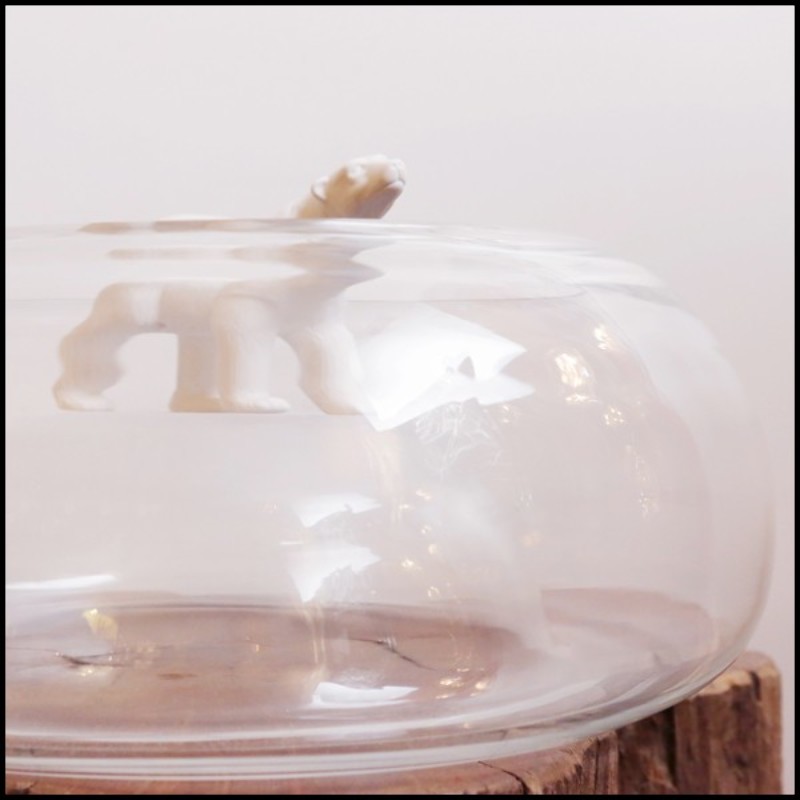Coupe ronde en verre clair avec ours en céramique blanche 104-Bear Round