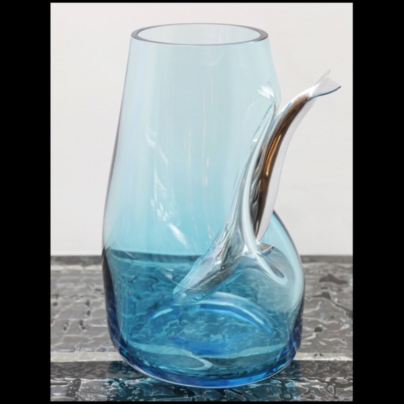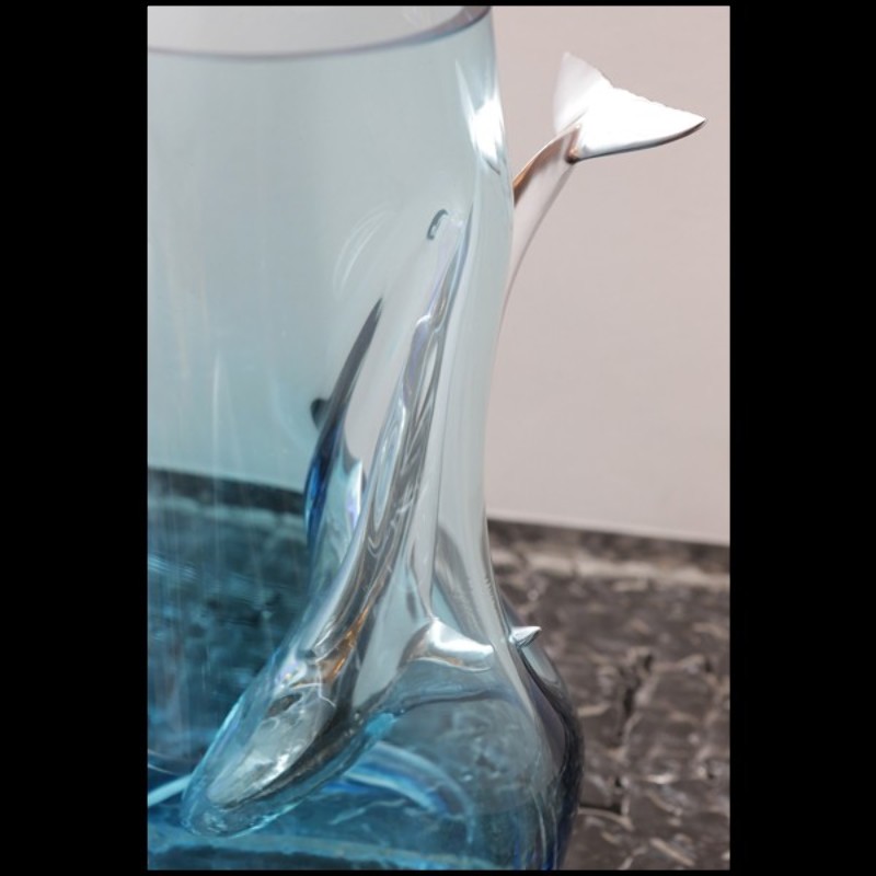 Vase en verre bleu soufflé à la main avec baleine en aluminium poli à travers le verre 104-Diving Whale Blue