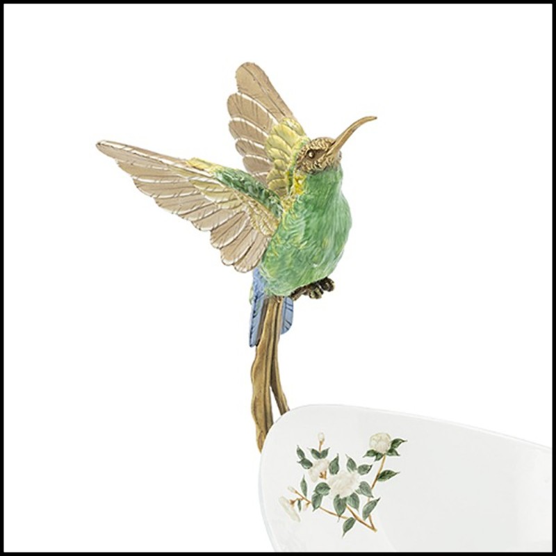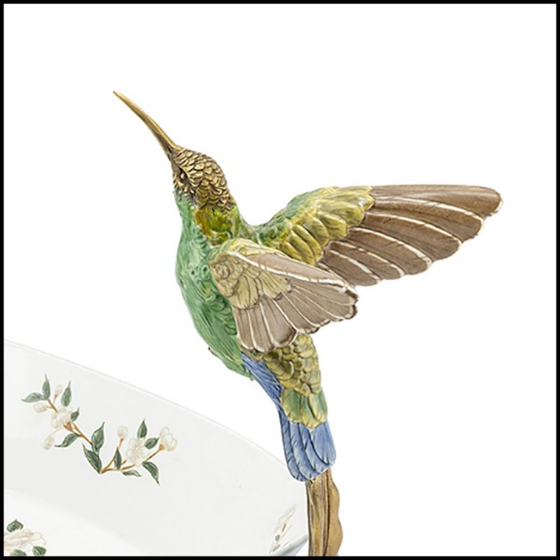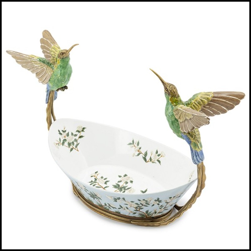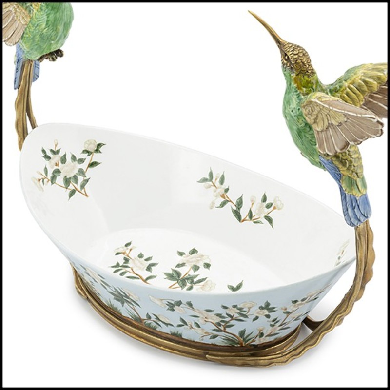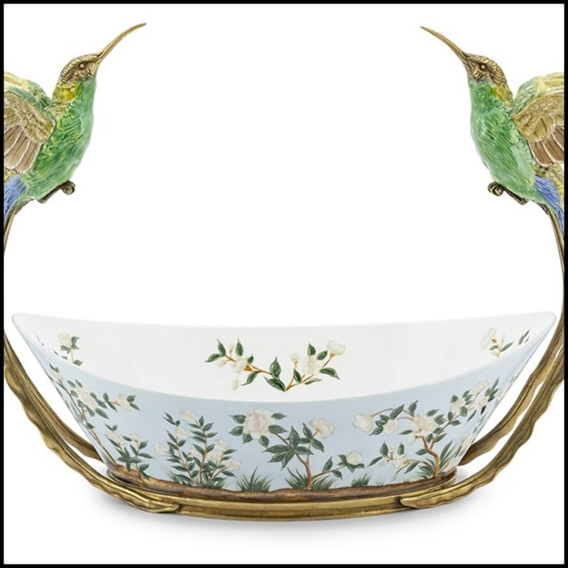 Bol peint à la main en porcelaine blanche avec un cadre en bronze 162-Birds Porcelain