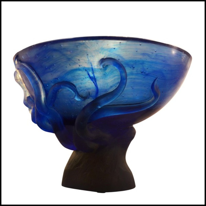 Vase Octopus, en cristal bleu de Baccarat, fabriqué à la main.