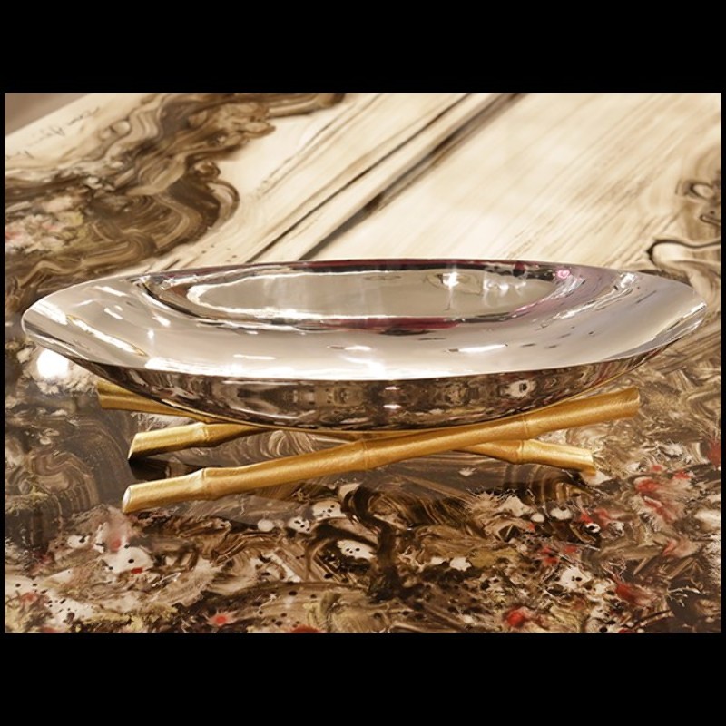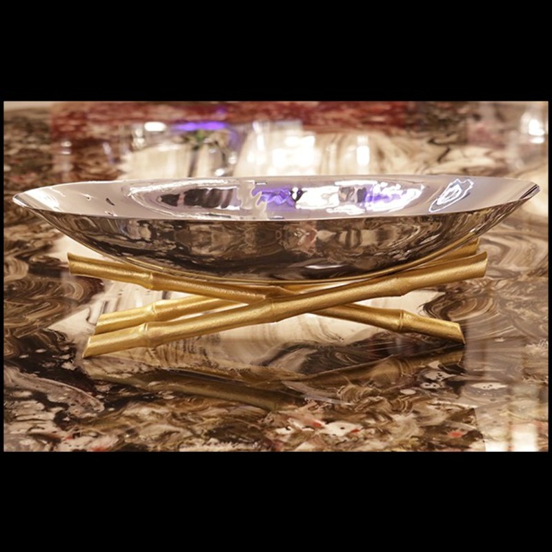 Coupe en acier inoxydable poli et plaqué or l'Objet- Bamboos Oval
