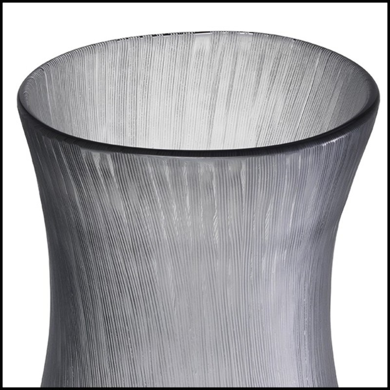 Vase Thiara en verre soufflé à la main gris avec lignes gravées.