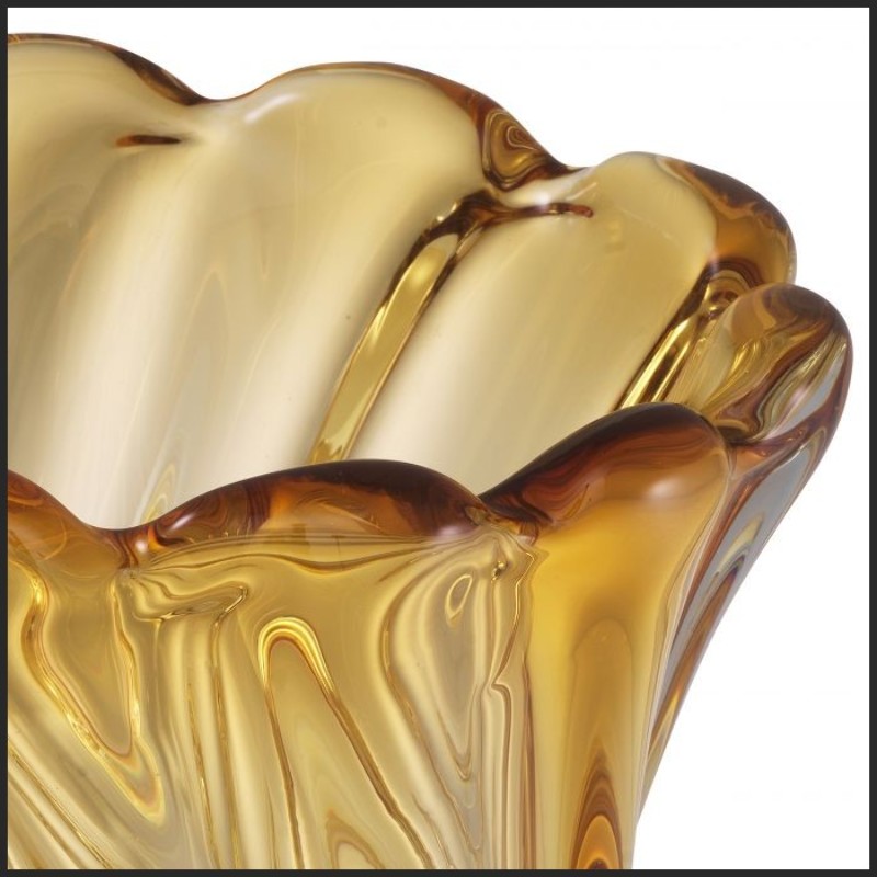 Verre jaune soufflé à la main et doté d'un bord en vague.