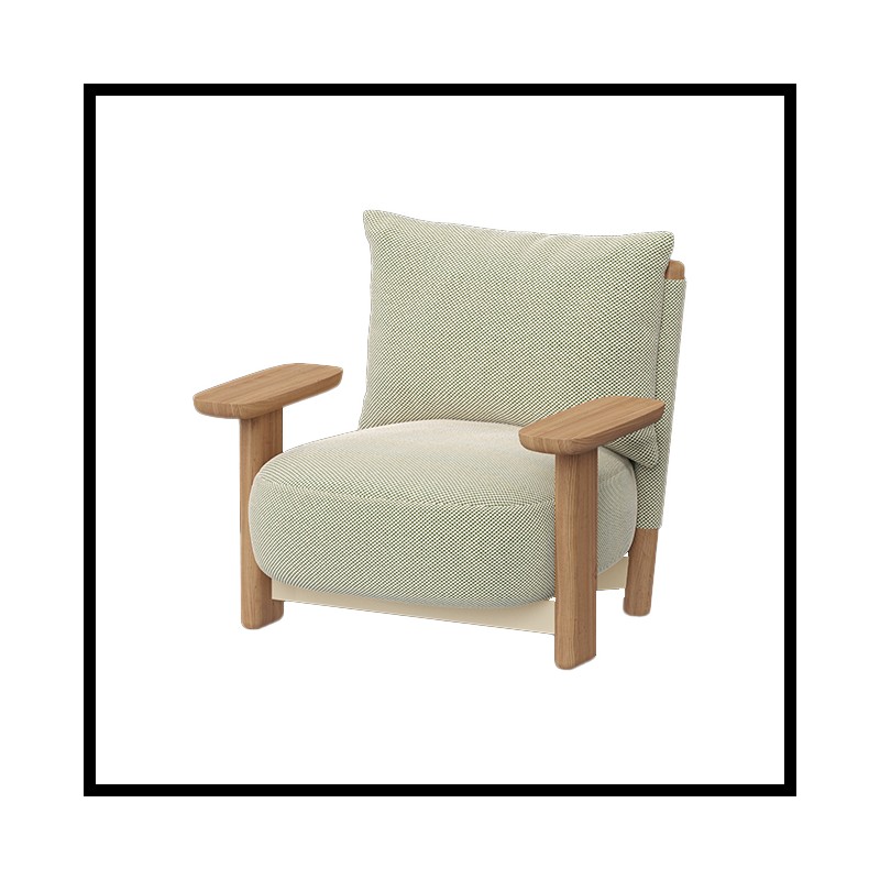 laquée et en bois iroko. Recouvert de tissu outdoor de haute qualité